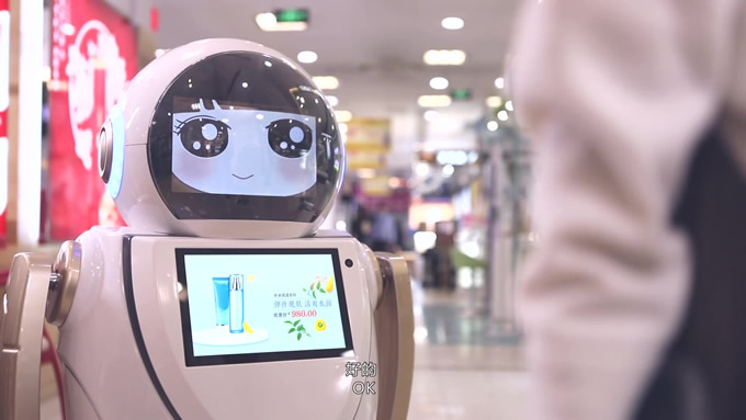 會(huì)說(shuō)英文的迎賓機(jī)器人