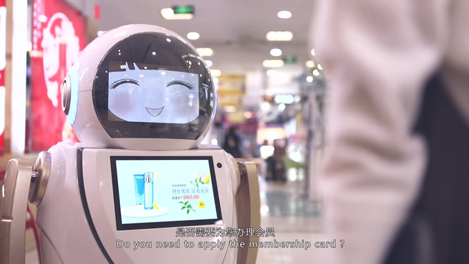 會(huì)說(shuō)英文的迎賓機(jī)器人