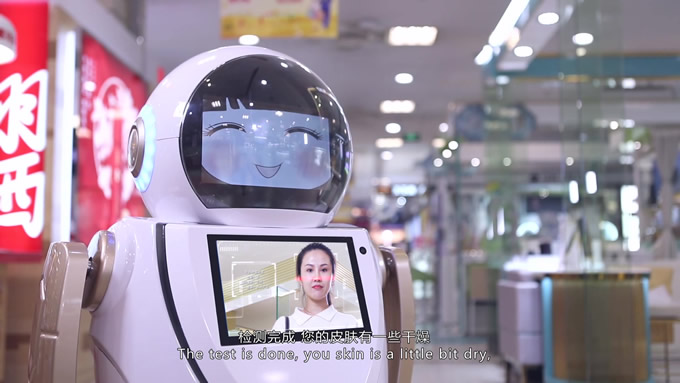 會(huì)說(shuō)英文的迎賓機(jī)器人