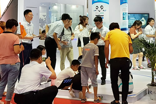 智能語音對(duì)話機(jī)器人正在展會(huì)上和小朋友對(duì)話互動(dòng)呢,這是機(jī)器人展會(huì)現(xiàn)場(chǎng),小朋友和機(jī)器人都很認(rèn)真對(duì)話交流呢...