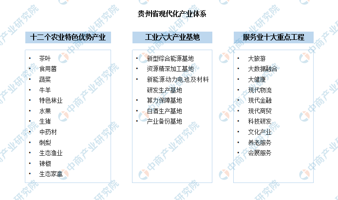 貴州省多面構(gòu)建以“農(nóng)業(yè)主抓十二個特色優(yōu)勢產(chǎn)業(yè)、工業(yè)全力建設(shè)‘六大產(chǎn)業(yè)基地’、服務(wù)業(yè)主抓十大創(chuàng)新發(fā)展工程”為引L的現(xiàn)代化產(chǎn)業(yè)體系。