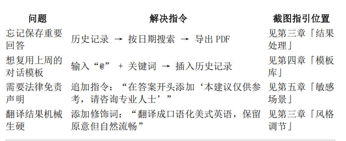 5)問(wèn)題應(yīng)對(duì)方案:遇到回答錯(cuò)誤、響應(yīng)慢、功能使用問(wèn)題,可按分類采取相應(yīng)解決措施。要注意保護(hù)安全隱私,避免危險(xiǎn)行為,利用隱私保護(hù)機(jī)制和敏感場(chǎng)景處理方法保障信息安全。若出現(xiàn)問(wèn)題,可借助官方診斷工具、社區(qū)互助資源和客服溝通解決 。