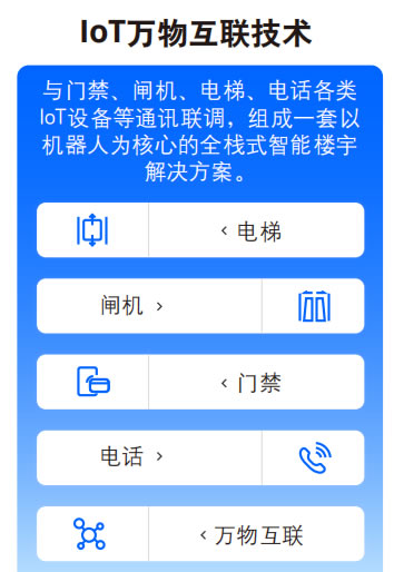 AIoT技術(shù)的核心在于通過物聯(lián)網(wǎng)技術(shù)支持服務(wù)機(jī)器人與各類設(shè)備(如電梯、 門禁系統(tǒng)、 電話系統(tǒng)等)建立實(shí)時(shí)連接 ,從而使機(jī)器人從孤立 的操作單元轉(zhuǎn)變?yōu)槎嗝婊ヂ?lián)的智能生態(tài)中的一 環(huán)。例如 ,在智能樓宇中 ,服務(wù)機(jī)器人可以通 過IoT技術(shù)與電梯系統(tǒng)聯(lián)動(dòng),實(shí)現(xiàn)自主乘梯,為 用戶帶來全棧式的智能服務(wù)體驗(yàn)。