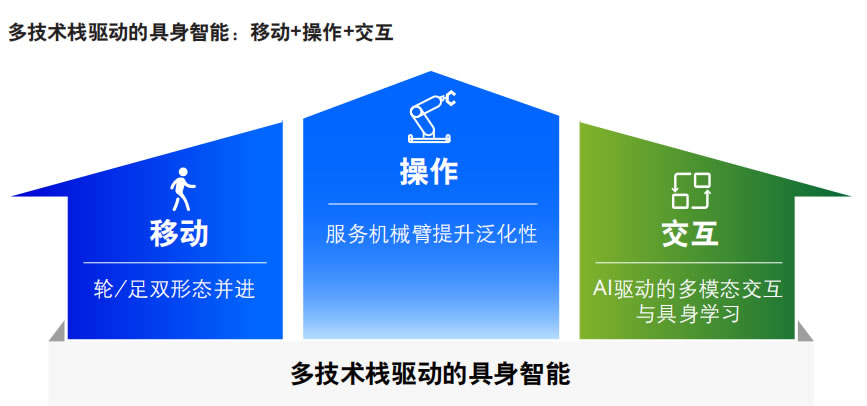 隨著行業(yè)發(fā)展進(jìn)入深水區(qū) ,單一的技術(shù)路線已 無法滿足市場(chǎng)需求。進(jìn)入行業(yè)下半場(chǎng)需要以更 廣闊的視角審視產(chǎn)業(yè)發(fā)展方向。在構(gòu)建全棧式 智能生態(tài)的過程中 ,多技術(shù)棧的協(xié)同發(fā)展已成 為必然選擇。從技術(shù)演進(jìn)的角度來看 ,當(dāng)前服 務(wù)機(jī)器人行業(yè)正處于關(guān)鍵轉(zhuǎn)型期——從單一的自主移動(dòng)能力向集移動(dòng)、操作、交互于一體的 多技術(shù)棧邁進(jìn)。可以預(yù)見 ,在多技術(shù)棧的驅(qū)動(dòng)下 ,以多模態(tài)感知、 自主決策、靈巧操作為核心特征的具身智能 ,將成為推動(dòng)全棧式智能生態(tài)發(fā)展的核心驅(qū)動(dòng)力。