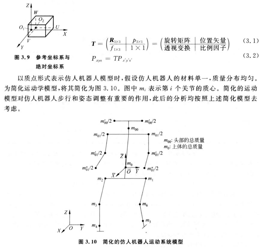 智能接待仿人機(jī)器人除了具有腿部的行走功能外,還具有上身的功能,自由度也比雙足機(jī)器 人成倍的增加。從仿生角度看,人的手臂在運(yùn)動(dòng)中起著協(xié)調(diào)運(yùn)動(dòng)的作用,智能接待仿人機(jī)器人的手 臂是d立運(yùn)動(dòng)的,在行走運(yùn)動(dòng)過(guò)程中起著重要的調(diào)整作用。從運(yùn)動(dòng)鏈角度看,智能接待仿人機(jī)器人由于有手臂運(yùn)動(dòng),故它是由三條鏈組成的復(fù)合運(yùn)動(dòng)鏈,運(yùn)動(dòng)學(xué)、動(dòng)力學(xué)、運(yùn)動(dòng)規(guī)劃上更為復(fù) 雜,不能直接用雙足機(jī)器人的動(dòng)力學(xué)模型來(lái)描述[94]。本節(jié)將在雙足機(jī)器人模型的基礎(chǔ)上, 結(jié)合智能接待仿人機(jī)器人的運(yùn)動(dòng)特點(diǎn),建立一個(gè)合適的運(yùn)動(dòng)模型,導(dǎo)出步行運(yùn)動(dòng)的數(shù)學(xué)描述。 本節(jié)設(shè)計(jì)的是一個(gè)19 DOF 的智能接待仿人機(jī)器人,暫不考慮其頭部 和手指的自由度。