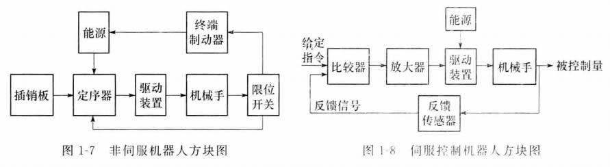 按照機(jī)器人的控制方式可把機(jī)器人分為非 伺服機(jī)器人和伺服控制機(jī)器人兩種。