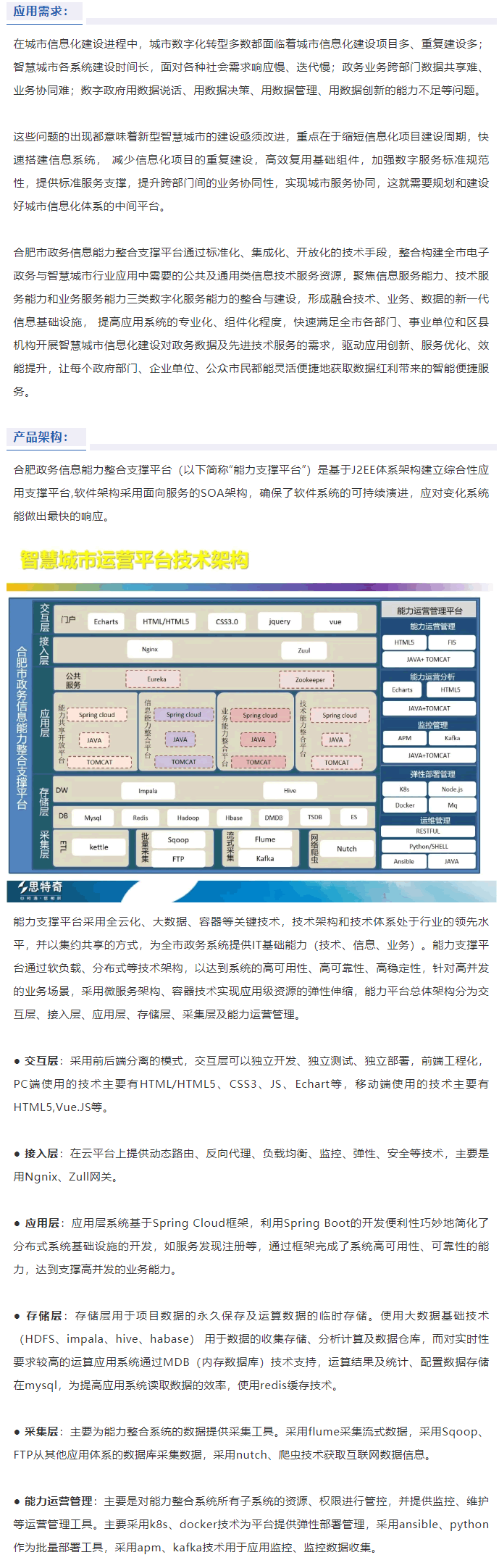 2、政務(wù)服務(wù)賦能。能力支撐平臺正在著力構(gòu)建包括信息能力、業(yè)務(wù)能力、技術(shù)能力在內(nèi)的2000多類信息技術(shù)服務(wù)能力, 旨在為各城市管理者、城市居民、城市服務(wù)機構(gòu)提供惠民、強政、興業(yè)的服務(wù)應(yīng)用支撐。截至目前,能力支撐平臺累計能力調(diào)用總次數(shù)達460多萬次,為不動產(chǎn)登記、數(shù)字蜀山、住房保障、合肥通等重大專項應(yīng)用提供24小時不間斷業(yè)務(wù)賦能。助力加快推進政務(wù)信息技術(shù)資源整合與共享應(yīng)用,助力初步實現(xiàn)全市基礎(chǔ)信息服務(wù)資源一體化管理格局,大大減少城市服務(wù)申請及辦理的時間、精力、物力和人力成本,跑腿次數(shù)減少了, 提交材料減少了,辦事時間縮短了,大大提升了城市服務(wù)滿意度和獲得感。