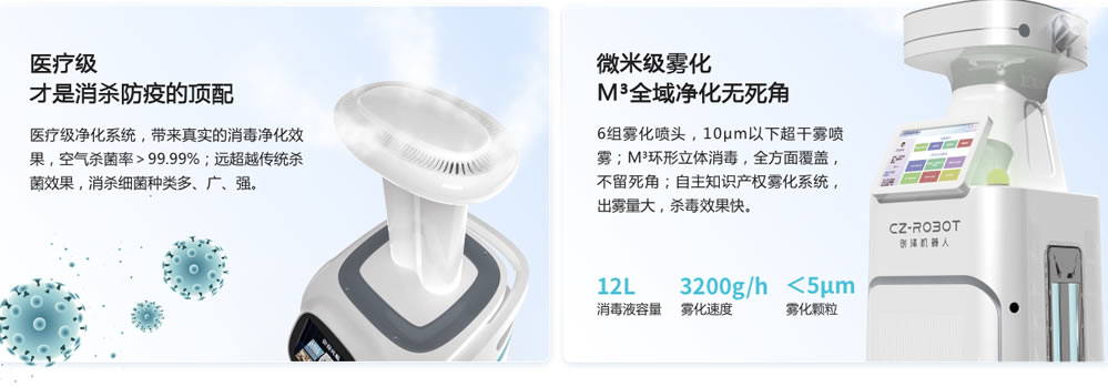 創(chuàng)澤智能機(jī)器人集團(tuán)副總邵紅臣:消毒機(jī)器人更新升級(jí)10余代,具備霧化消毒,紫外線消毒,等離子消毒等多種消毒模式,可以實(shí)現(xiàn)一鍵消毒,完成360度全方位無(wú)死角的覆蓋