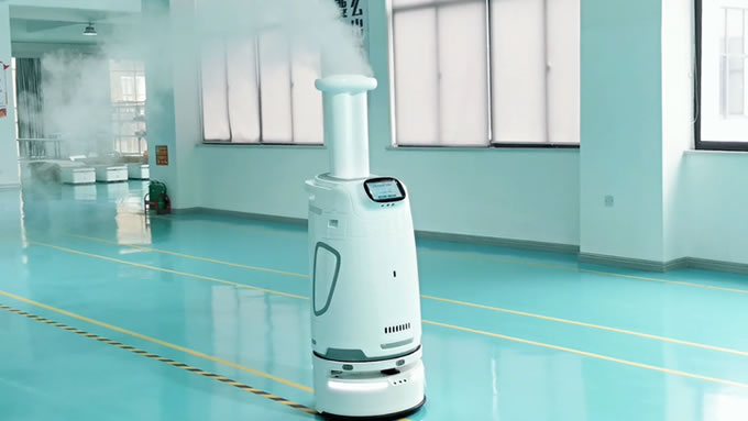 消毒機(jī)器人使用霧化噴霧、紫外線燈雙重途徑消毒滅菌,是保證隔離點(diǎn)各個(gè)死角、空氣安全性的強(qiáng)力護(hù)衛(wèi)。微米級霧化裝置搭配環(huán)繞式紫外燈,可以實(shí)現(xiàn)360度無死角自主消殺。